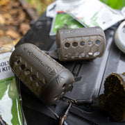Korum Combi Feeders, innovative feeder that supplied with a set of caps so they can be fished as either a block end or open ended feeder. With less holes than the mesh combi feeder for a slower more controlled bait release, and ideal for deeper water. Ideal for a wide range of live bait and groundbait options.