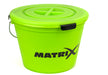 This Matrix Bucket Set Inc. includes a 20Ltr capacity bucket with a lid, carry handle, inner plastic groundbait bowl, and groundbait riddle.
