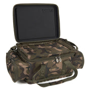 The Fox Camolite Barrow Bag, developed to compliment the Transporter barrows with a fixing on the back that hooks over the frame. Also making a good stand alone barrow bag and ideal for use on various other barrows. With a top pocket designed to accept a large Fox tackle box, plus two external side storage pockets.  With additional zipped mesh storage pockets on those outside side pockets, ideal for accessories you need close to hand. With a reinforced base padded camo polyester grab handles and a removable camo padded shoulder strap.