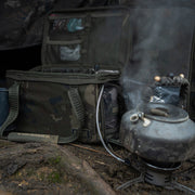 The Nash Subterfuge Brew Kit Bag is designed to take all your tea and coffee essentials including a kettle and stove. Built with a stiff walled construction for safe transport. It includes a fully fold-flat inner central divider boasting a ⅓ foil lining to help keep a bottle of milk cool, as well as three zip pouches under the lid which are ideal for separate sachets and elasticated loops for teaspoons.