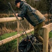 Trakker NXC Camo Elasticated Tip Protectors, two protective padded pouches held together by adjustable heavy duty elastic. Designed to fit rods from 6 to 13 feet in length when broken down into two. One of the pouches is slotted to accommodate large 50mm rings and retractable rods. Possibly most simple and fuss free way of carrying an outfit to the bank.