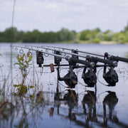 ESP Buzz Bars, smart all-black hard anodised bank ware from ESP featuring stainless steel inserts that do away with the need for rubber O rings and locking collars. Designed for use with the most popular alarms currently on the market. Available in 2-rod and 3-rod versions. A conversion kit can be purchased separately to transform them from a single bank stick thread to a goalpost-style setup with a pair of bank sticks.
