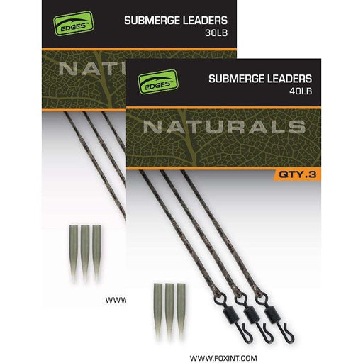 View full detailsFox Edges Naturals Submerge Leaders, 3 fully setup rigs made up from pre-spliced Submerge Naturals lead-free leader. Featuring size 7 Kwik Change S...