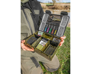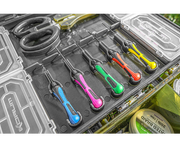 BLOX is a new tackle storage concept aimed squarely at the angling allrounder. Designed to house all you need in one highly organised place. We've carefully sized BLOX to house must-have items of end tackle, like spools of line, packets of hooks and accessories. There's the option to use the dedicated BITS BLOX if you prefer compartments, as well as being able to house terminal tackle in the lid of the box. Your Baiting Tools and Scissors all click into place neatly, whilst the main box can be adjusted with dividers to suit your needs. If desired, you can also put your RIG BLOX inside, keeping all your pre-tied hooklengths safe from the elements. It's one box that does it all! • Durable construction • Sealed gasket • The most organised tackle box in fishing - 196mm (D) x 250 (W) x 91mm (H)