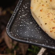 The RidgeMonkey Classic Sandwich Toaster XL Granite Edition features fixed cool-touch handles, riveted hinges and a full utensil set that fits inside the toaster for easy storage. The square shape also means that there is less wasted storage space than with traditional circle shaped cookware.