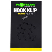 The Korda Hook Klip Medium is a simple way to add a quick change hook connection to just about any rig. Just thread your hook eye onto the latch and secure in place by sliding a kicker over to close the gap. Makes replacing blunted and damaged hooks a very easy task.