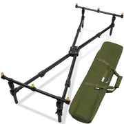Fully adjustable NGT 'Cross Pod' with deluxe case. Although adjustable, this is designed as a 'low pod.' It can hold up to three rods and comes complete with deluxe case. Features include: aluminium profiled tubes, stable main body, front and rear adjustable 3 rod buzz bars, easy to fold, complete with carry case.