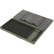 A compact tackle box designed to hold ready made hair rigs and the components to build them.  Like our standard Boxsystem, this is held together by magnets making accessibility and storage fast and secure.  Added benefits include a 20cm measure on the front, ideal to aid rig making.  With 6 lidded secure compartments for terminal tackle this will make a great addition to any angler’s tackle.  (Includes pins to secure rigs.)