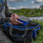 The Preston Innovations Supera X Bait, compact bait storage and transport solution with an inner foil thermal lining. In addition to the main compartment there are full sized zipped pockets at either end, plus a full sized front pocket. Manufactured from super tough wipe clean 840D fabric, and fitted with strong oversized zips. With a reinforced base, detachable padded shoulder strap and padded carrying handle.