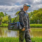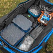 The Preston Innovations Supera X Compact Carryall, a smaller sized carryall ideal for your tackle essentials. In addition to the main compartment there are two full sized zipped pockets at either end, plus a full sized front pocket. Manufactured from super tough wipe clean 840D fabric, and fitted with strong oversized zips. With a reinforced base, detachable padded shoulder strap and padded carrying handle.