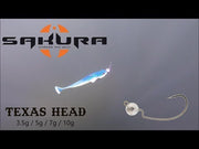 The Sakura Texas Jig Head is designed to fit Sakura soft lures and provide optimal swimming and presentation. It comes in four weights and three hook sizes for use with different sized lures. The offset hook and Texan assembly allow for exploring cluttered areas without accidental snagging.