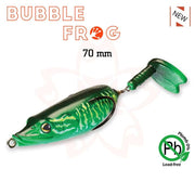 Sakura Bubble Frog 70F is the top choice for surface fishing in crowded areas. Its unique design and rotating tail produce a combination of bubbles and a distinctive "plopper" sound, making it an irresistible target for fish. The construction and high-end weaponry of its body also contribute to improved hooking efficiency and reduced snags in seagrass. The latest version, 2024, features new Sakura eyes and a Zinc alloy insert in compliance with regulations.