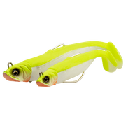With a lively kicking action both on the drop and retrieve, baitfish imitations don’t get much more realistic than this. Utilising a unique rise and stand-up jig head that ensures a perfect action, the lure comes up on the retrieve and stands up when resting on the bottom. The Pro Peg body holder makes it possible to peg the body to the head with a toothpick, creating a very simple and secure hold. The soft PVC body comes pre-rigged with a glass rattle to give the lure an extra enticing sound. This weedless version of the lure features a strong click-on connection for the interchangeable EWG hook.