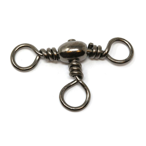 View full detailsMustad Three Way Cross Barrel Swivel, Mustad Barrel Three Way Cross Swivel. Solid Collar and 3-twist wire eyes. Black Nickel.