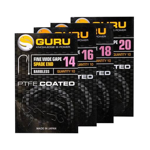 View full detailsNow PTFE coated in the Guru 'SUPER' finish. This barbless, eyed hook pattern is ideal for all round pellet waggler, pole & feeder fishing, and ...