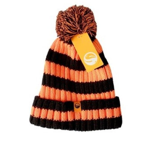 One size fits all soft material, knitted beanie hat with bobble Black & Orange stripes - Guru Colours