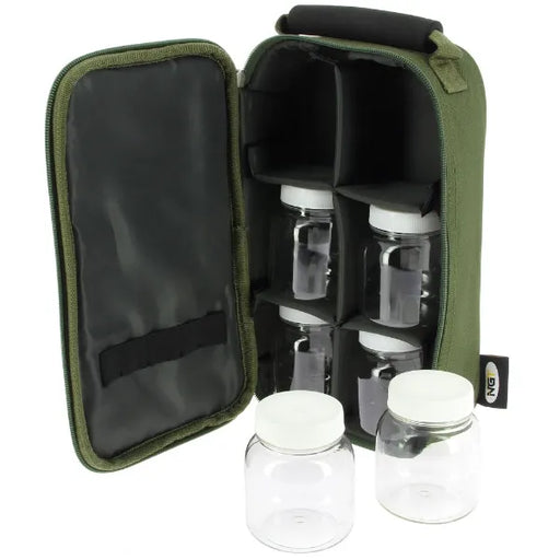 This NGT Glug Bag features 6 glug pots precision-crafted from 600-denier polyester with PVC backing and encased in a well-padded carry handle.