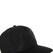 A Black/Camo version of the Fox Flat Peak Snapback Cap finished in smart full black with a camo lining and under peak. Providing maximum shade for your eyes in sunny weather and with a black rubber embossed Fox logo.