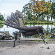 The Fox EOS Lounger Chair features a supportive comfy bucket style seat with a 4-position reclining back rest, padded Polyester mattress and padded Micro fleece arm rests. With 4 adjustable legs and swiveling mud feet coping for with uneven ground. Weighing in at a lightweight 7.3Kg they make a great option for anyone looking for sturdy comfortable bankside seating without adding a ton of weight.