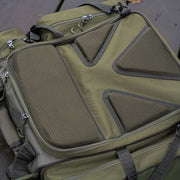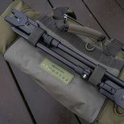 Korum Progress Ruckbag 35 Litre is a tackle transport option with spacious side pockets and built-in features to carry chairs and a roll mat. The backpack also has padded straps and a chest clip for comfortable wear.