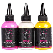 Use Cloud Liquids to boost mesh and solid PVA bags, sticks and hookbaits, their application is limitless. When takes dry up on zigs kick start the action again by soaking a pop up or piece of foam – the longer the better, to create a high attract visible flavour trail. 100ml bottles.
