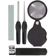 The complete hook sharpening kit with a nylon case, to keep hooks razor sharp at all times. Includes: