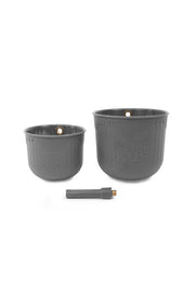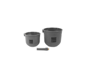 Supplied in packs of two different sizes, both of which feature perforated holes in the base to ensure optimum bait release. Brass threads provide durability and strength when potting in heavy baits such as ground bait. Each KUP set is supplied with one internal diameter attachment.