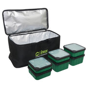 Bag specifically designed for storing bait boxes. Supplied with 6 bait boxes (2x1L, 2x1.5L and 2x2L).