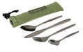 - Stainless Steel Cutlery Set includes; knife, fork, tablespoon, and teaspoon.