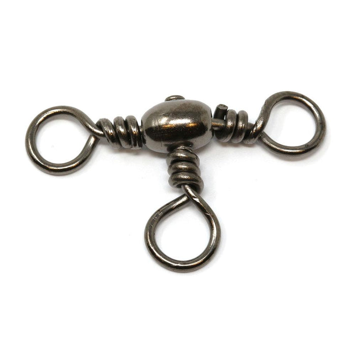 The Tronix 3 Way Swivel is a practical solution for all kinds of fishing setups. Its unique design makes it ideal for lure fishing, with the middle eye enabling attachment of a lead and the leader coming off the second eye. It is also perfect for live baiting, offering secure attachment of the hook length to the middle eye.